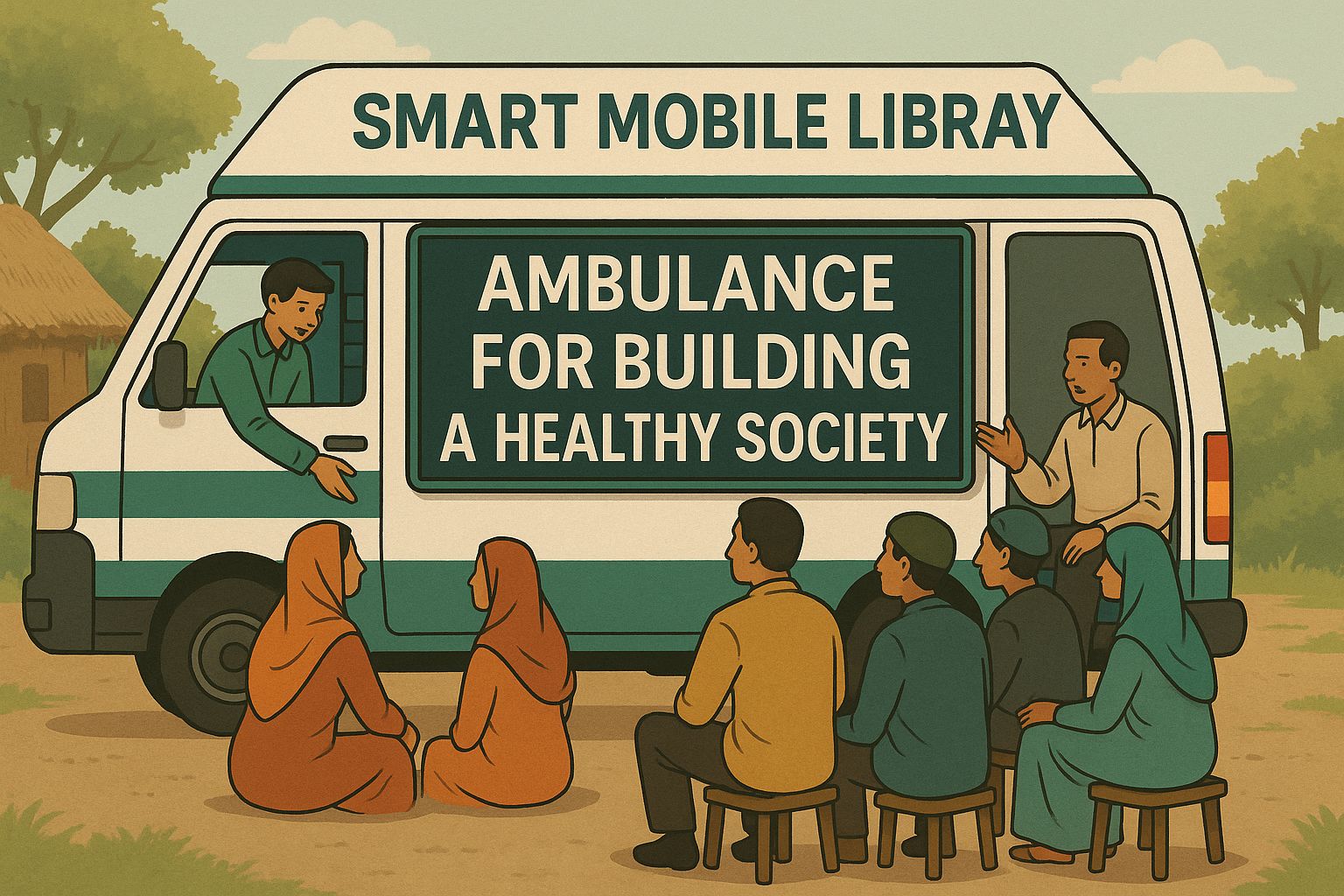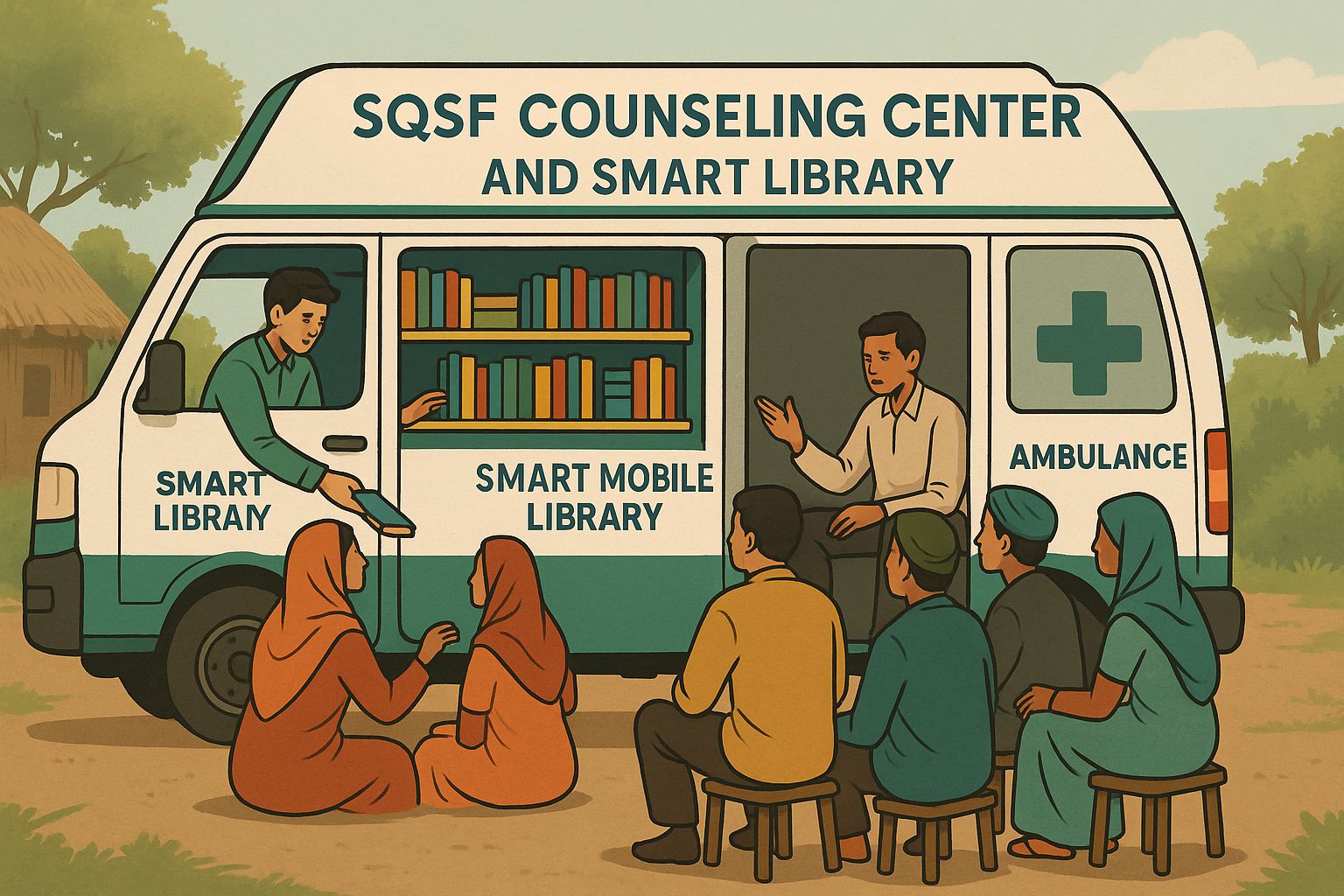 “SQSF স্মার্ট ভ্রাম্যমাণ লাইব্রেরি—একটি চলন্ত পাঠাগার, যেখানে বই, প্রযুক্তি আর আগ্রহ একসাথে।”