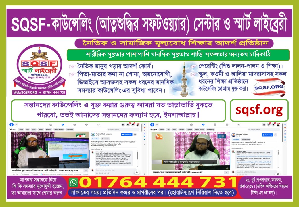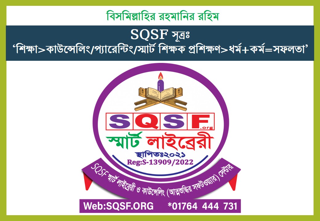 আস-সালামু আলাইকুম। SQSF-কাউন্সেলিং সেন্টার এন্ড স্মার্ট লাইব্রেরী (আত্নশুদ্ধির সফটওয়্যার)।